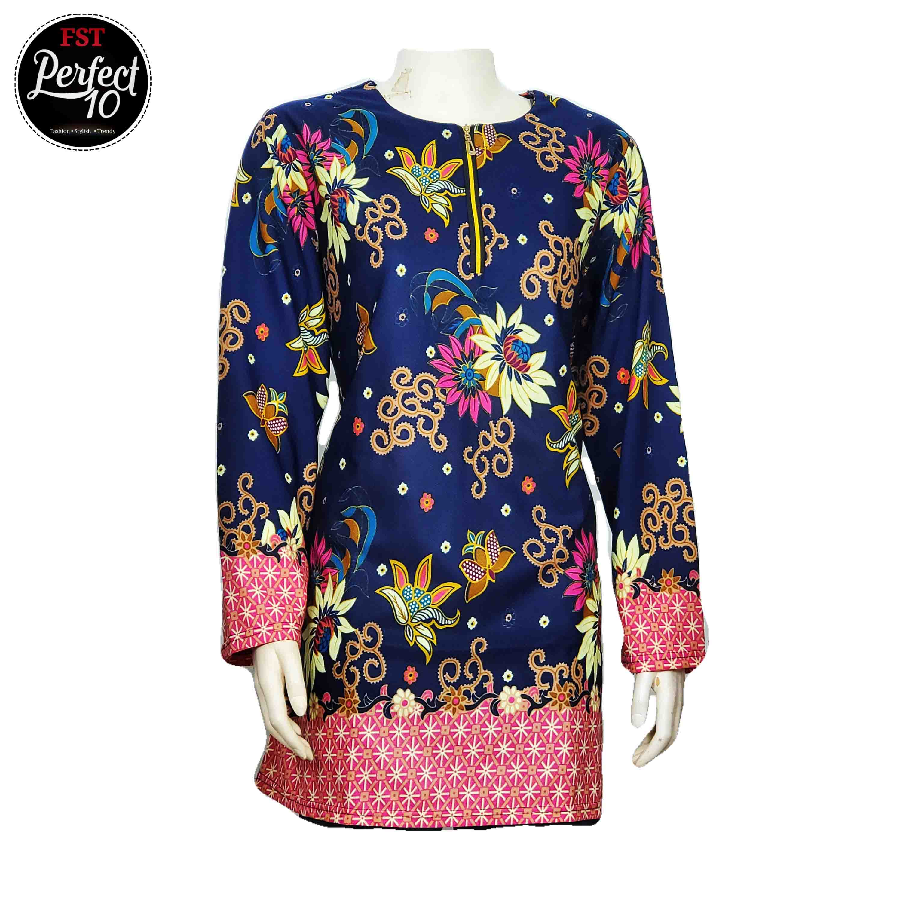 Design Baju Raya 2021 Batik : Fst Muslimah S 5xl Plus Size Zip Flora Batik Long Sleeve Fashion Blouse Baju Raya 2021